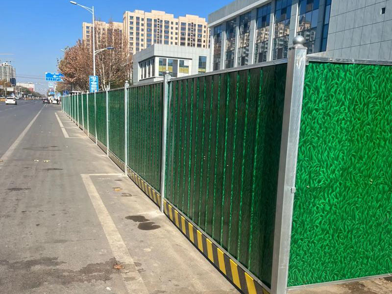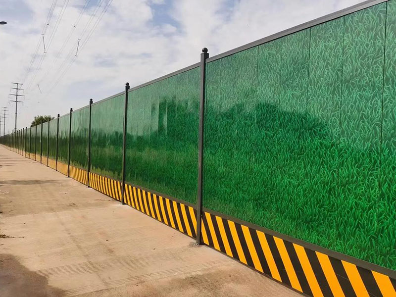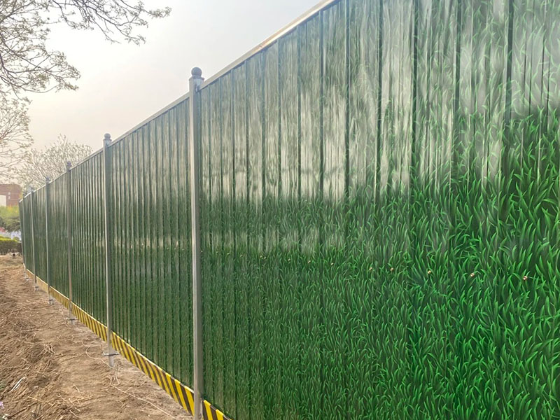 小草围挡在彩钢板上使用3D喷漆做出的仿小草图案,仿真效果好,同时具有彩钢围挡的一切优点,外表更亮丽,立柱、上下挡板,面板与彩钢围挡相同,满足客户的差异化需求。
